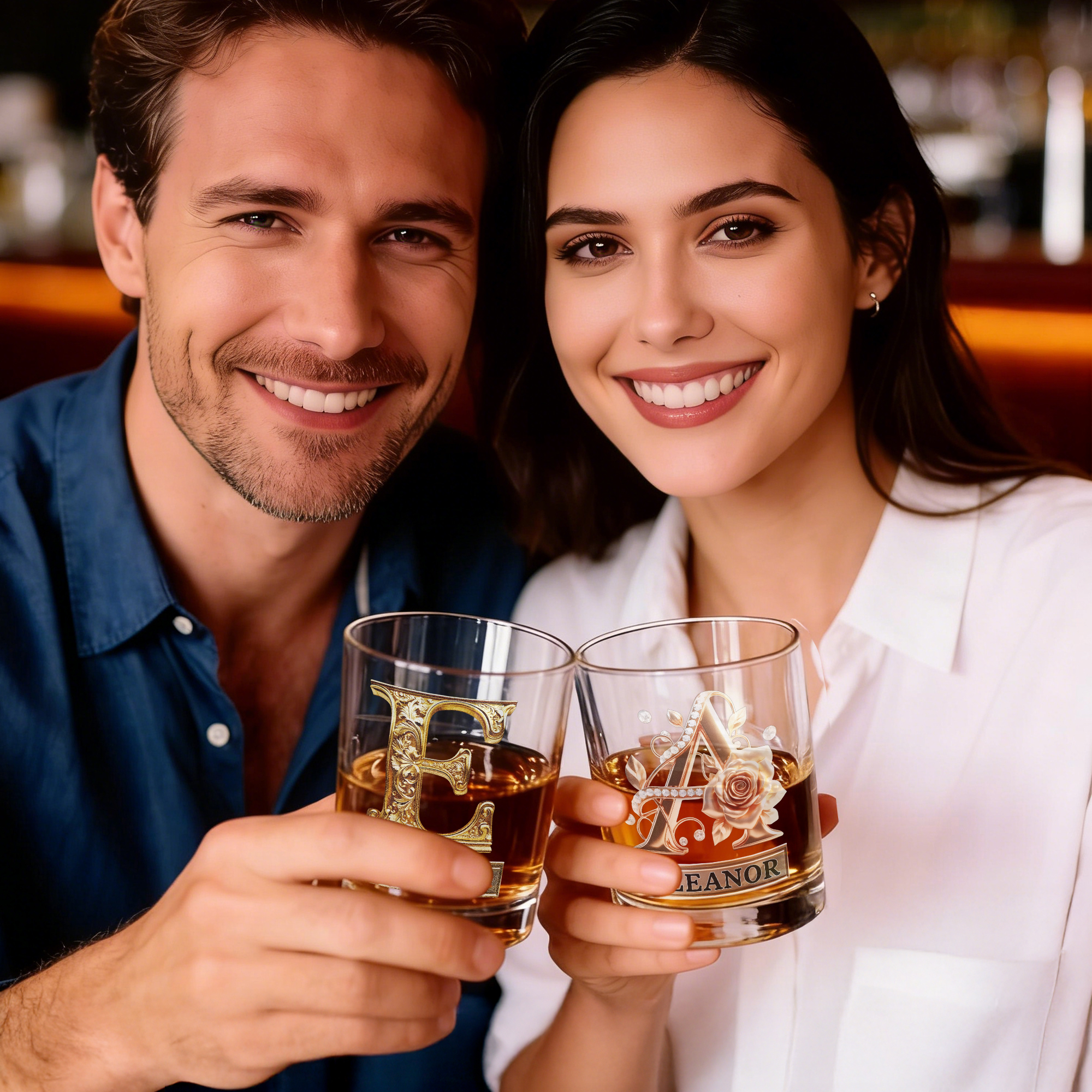 Personalized Touch - Each glass can be customized with a name and initial, turning it into a one-of-a-kind whisky glass with name. The clear embossing/rose pearl design adds character and meaning, making every sip feel personal and special.