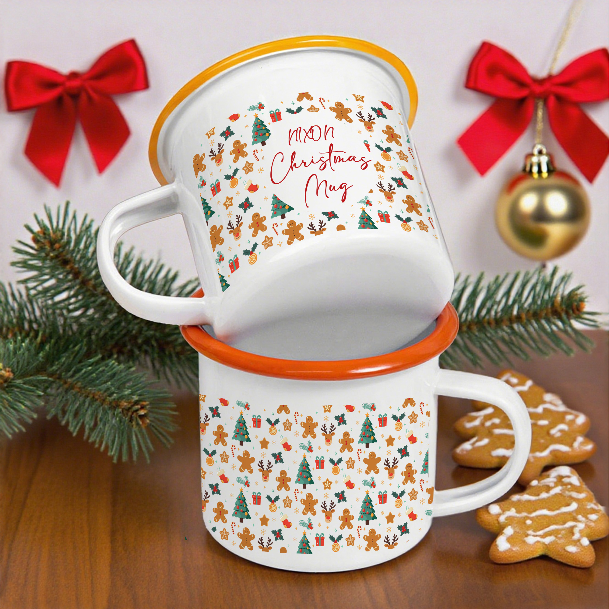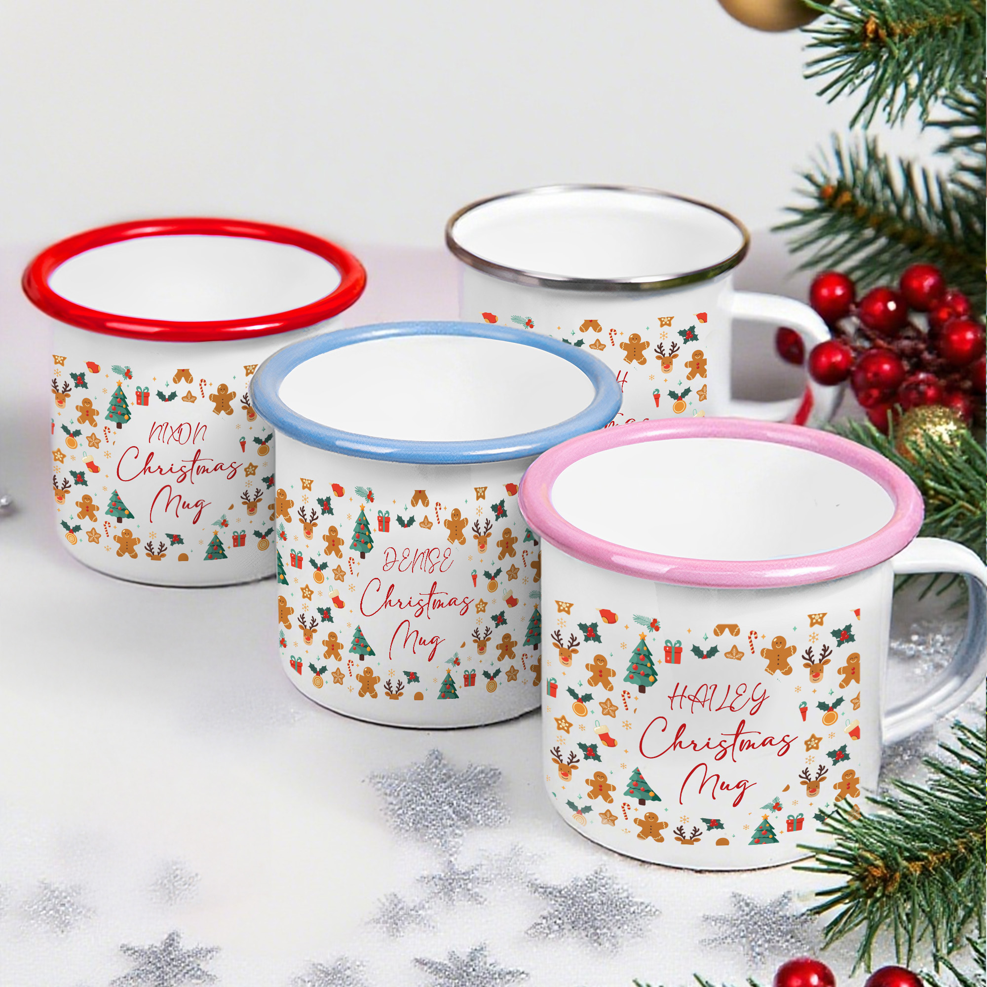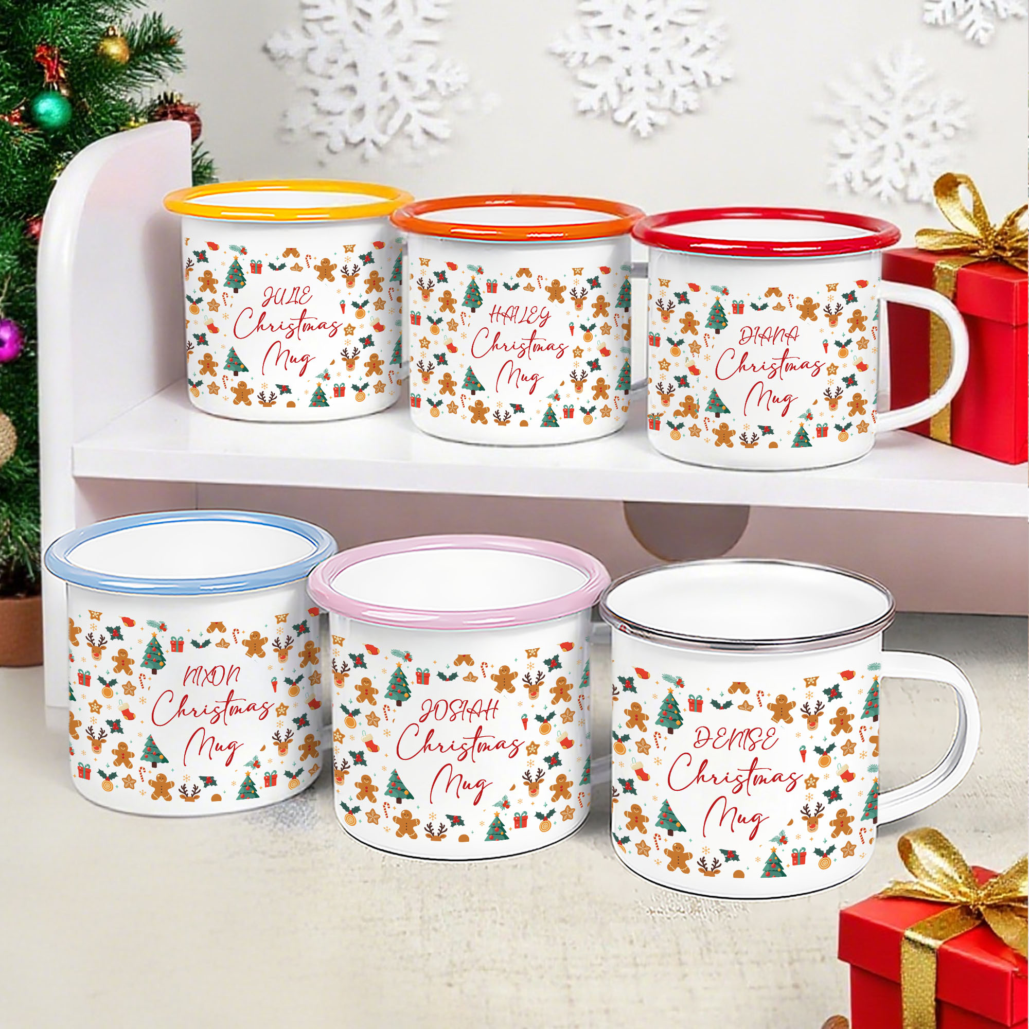 Festive Christmas Design - This 12oz enamel mug comes with colorful holiday elements such as Christmas trees, gingerbread men, elks and candy accents, creating a cheerful and playful style kids will love during the season.