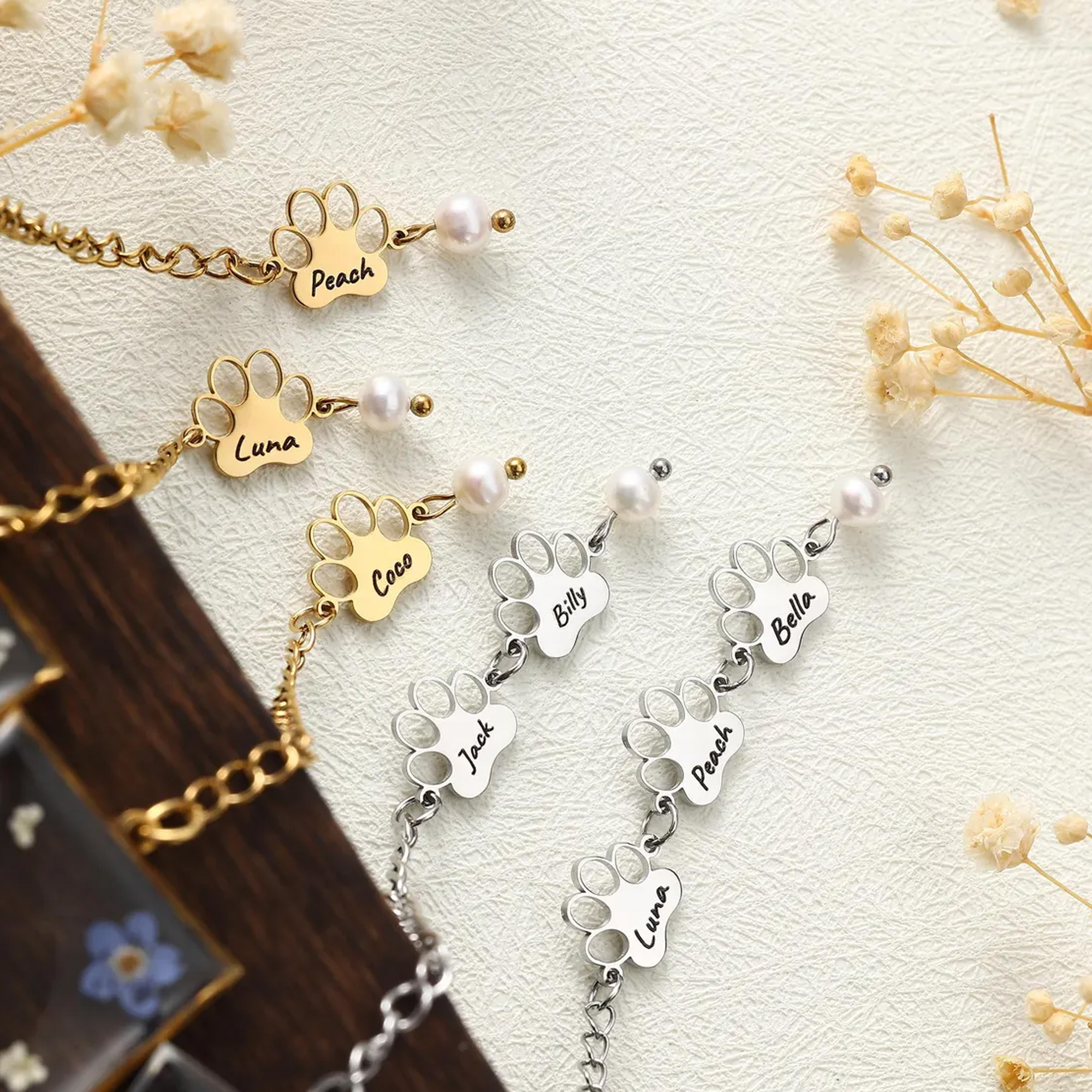 Custom Name & Paw Charm – Personalize the gold chain with up to three engraved name paw-shaped charms —to honor your furry friend. The charm adds a meaningful touch that celebrates their unique personality and bond.