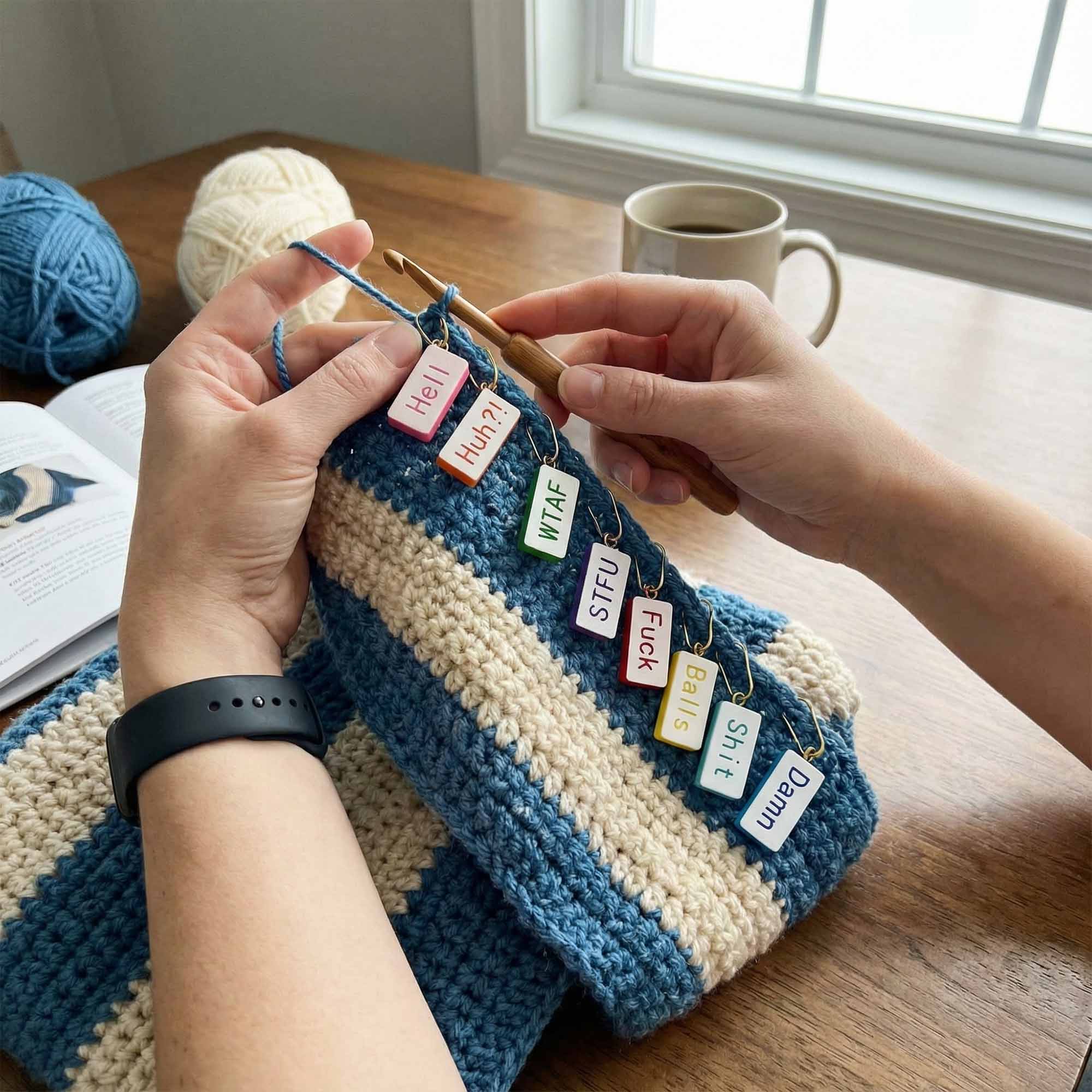 Funny & Relatable Knitting Charms – This playful set features colorful stitch markers with humorous phrases—perfectly capturing the candid moments every knitter or crocheter knows all too well. Each charm is designed to bring a smile and a laugh during crafting sessions.